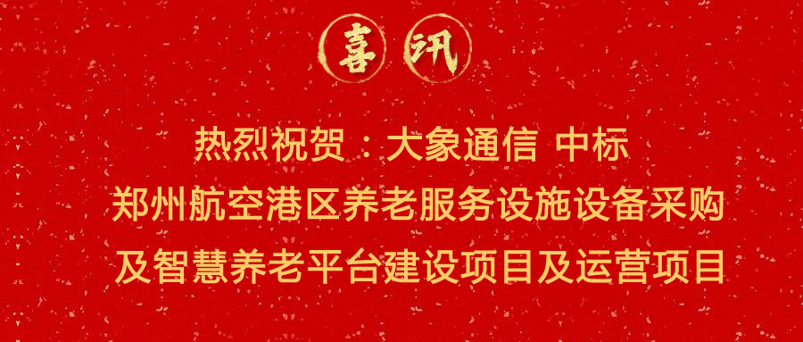 中標(biāo)喜訊 | 熱烈祝賀大象通信中標(biāo)鄭州航空港區(qū)養(yǎng)老服務(wù)設(shè)施設(shè)備采購(gòu)及智慧養(yǎng)老平臺(tái)建設(shè)項(xiàng)目及運(yùn)營(yíng)項(xiàng)目